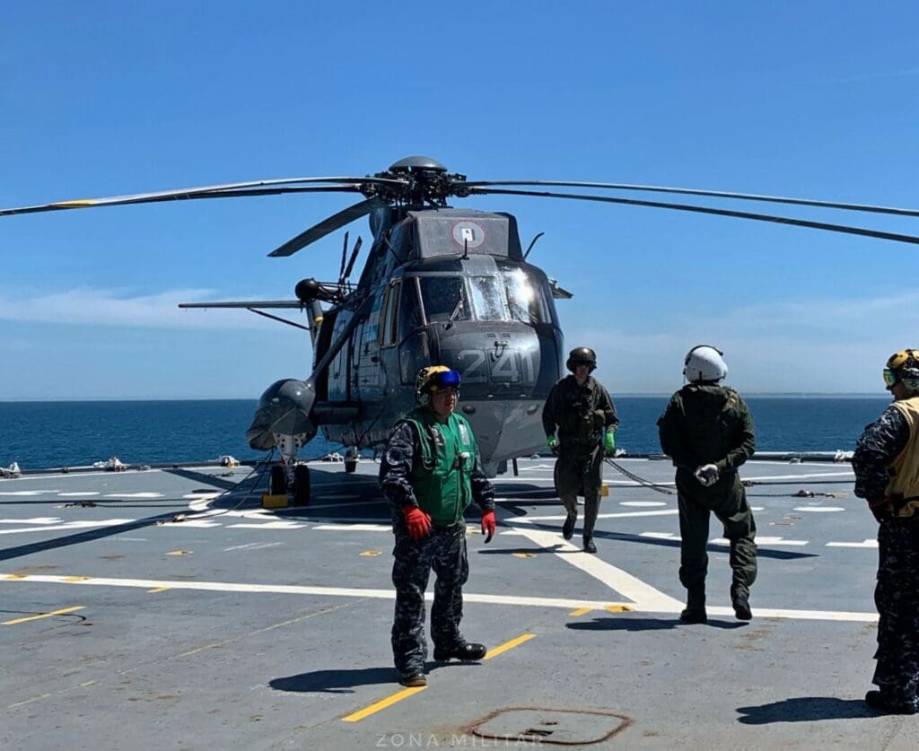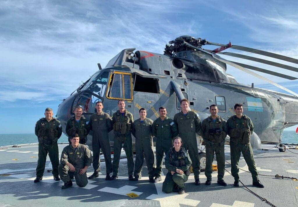 En la jornada de ayer, frente a la ciudad de Mar del Plata, también se realizaron operaciones con la Aviación Naval, particularmente con el UH-3H Sea King 241 y personal de la Segunda Escuadrilla Aeronaval de Helicópteros.