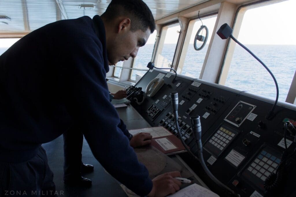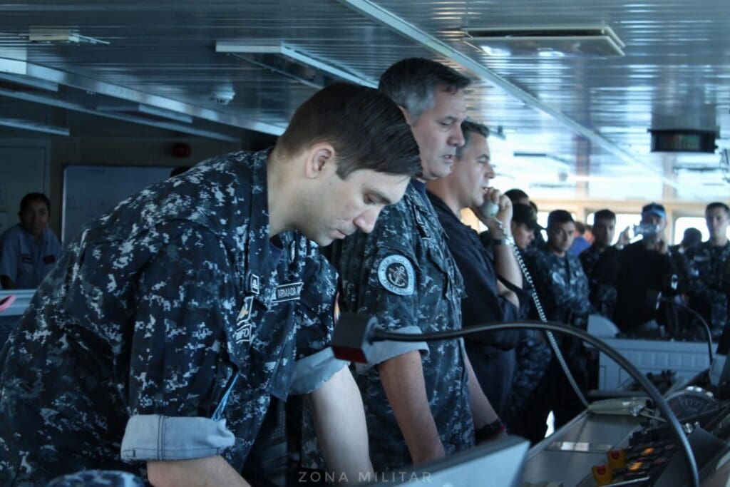 Aproximadamente a las 0900 se dio aviso a la dotación e invitados sobre las actividades de la jornada, con el comandante del buque junto con el jefe de maquinas ubicados en el puente de mando dando la luz verde para poner los cuatro motores en su funcionamiento máximo y revisar cualquier novedad.
