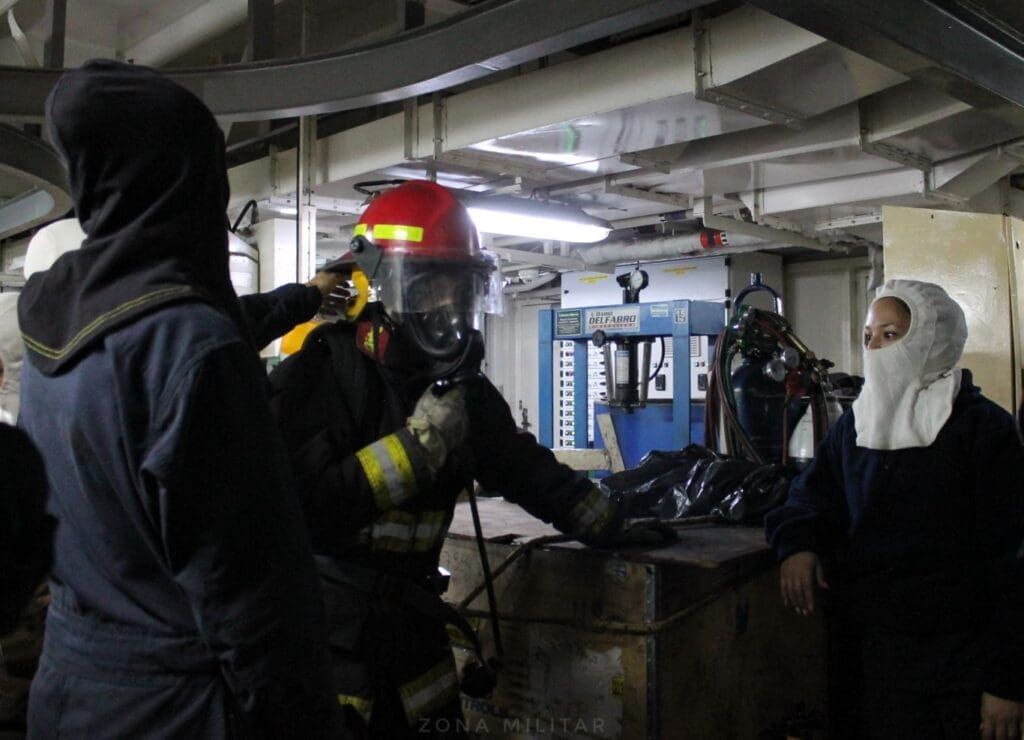 Al cierre de este primer reporte a bordo del Almirante Irízar también pudimos presenciar otros ejercicios, como la prueba de alarmas, luces, sistema de burbujeo, prueba de sistema de lucha contra incendio (espuma) y clase de rol de cubierta de vuelos y black out (apagado de toda la electricidad y encendido).