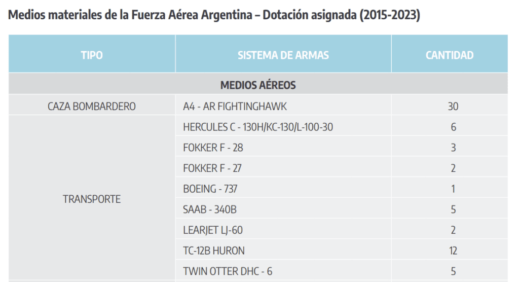 Frente a esto, una primera alarma a la hora de revisar el cuerpo del mismo es la disociación con respecto a los datos que se presentan con respecto a las capacidades de las Fuerzas Armadas. En la elaboración de tablas que se presentan en el apartado donde se expone el actual Sistema de Defensa Nacional se encuentra el detalle del Instrumento Militar sumamente desactualizado, con unidades que se encuentran fuera de servicio o desprogramadas.