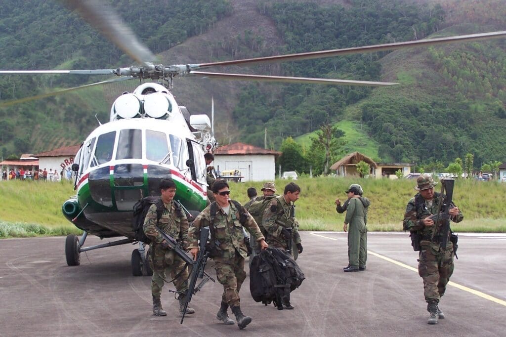 En experiencia les sigue la Policía Nacional del Perú, que desde hace décadas ha incluido estos sistemas -ahora los Mi-171- en sus operaciones contra el terrorismo y de control antidisturbios en zonas rurales.
