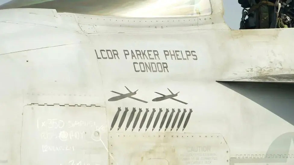 Con ello, también se registraron las primeras kill marks de drones hutíes en algunos de los cazabombarderos embarcados F-18E/F Super Hornet embarcados en el portaaviones USS Dwight D. Eisenhower, y a su vez otras marcas asociadas a los ataques terrestres. Estos forman parte del paraguas defensivo de la Armada de EE. UU. para hacer frente a la amenazas provenientes de Yemen y garantizar la seguridad de los buques mercantes que navegan por las aguas del Mar Rojo.