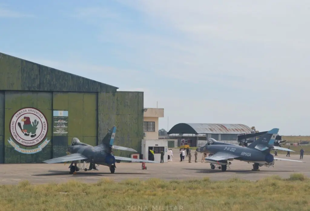 Durante una escala realizada en la Base Aeronaval Comandante Espora, previa a iniciar un vuelo a bordo de un C-130H Hércules de la Fuerza Aérea Argentina rumbo hacia la milla 200 del Mar Argentino con motivo del incidente registrado con un pesquero chino, el Comando de Aviación Naval de la Armada exhibió en plataforma a un Super Étendard junto a un Super Étendard Modernise pertenecientes a la 2da Escuadrilla Aeronaval de Caza y Ataque.