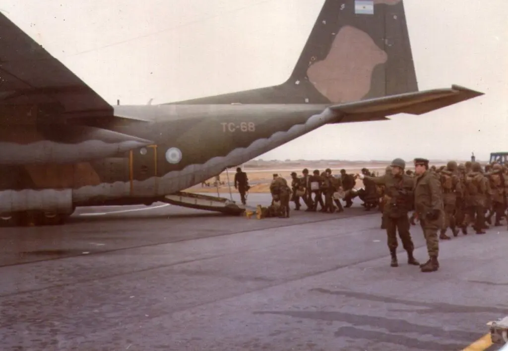 Pasadas las 0500hs, desde la IX Brigada Aérea despegó el C-130H TC-68, Indicativo “LITRO 1”. El cuatrimotor transporta más de un centenar de hombres. Este heterogéneo grupo estaba compuesto por efectivos del Grupo de Operaciones Especiales, Elementos de Control de Transporte Aéreo, soldados del Ejército Argentino, personal del Componente Aéreo del Teatro de Operaciones así como dos vehículos del Ejército y material para una Terminal Aérea de Carga.