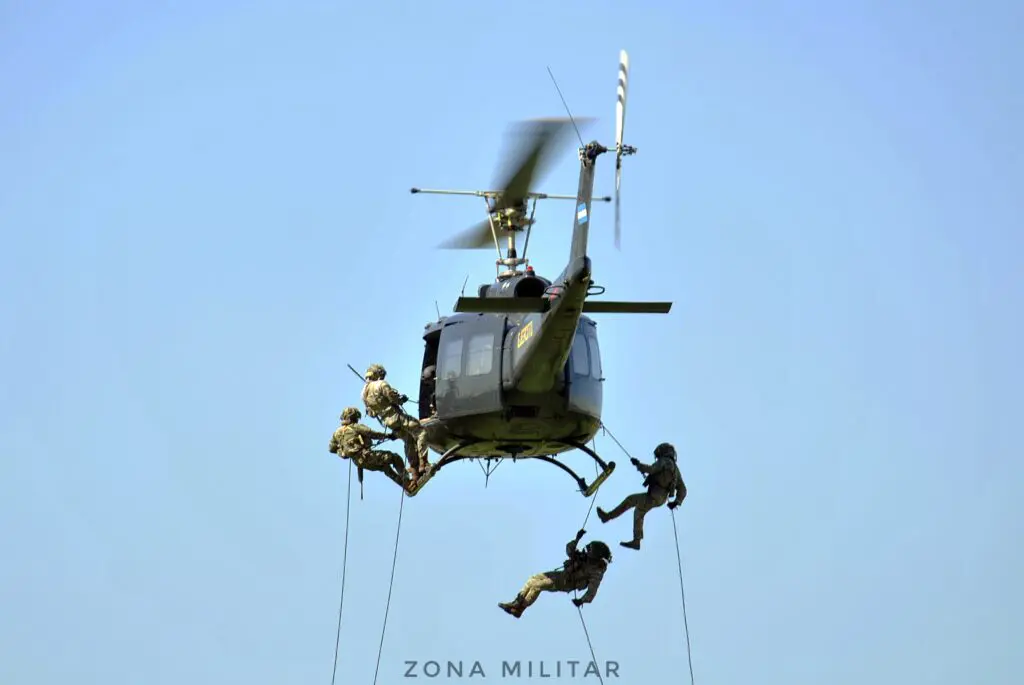 Además, esta actividad contó el apoyo y despliegue de diversas aeronaves de ala fija y ala rotatoria del Comando de Aviación de Ejército. Más en detalle, el Escuadrón de Helicópteros de Asalto 601 desplegó sus Bell UH-1H Huey II con equipos de rappel y fast rope, apreciándose la presencia de artilleros de compuerta con ametralladoras MAG en cada puerta.