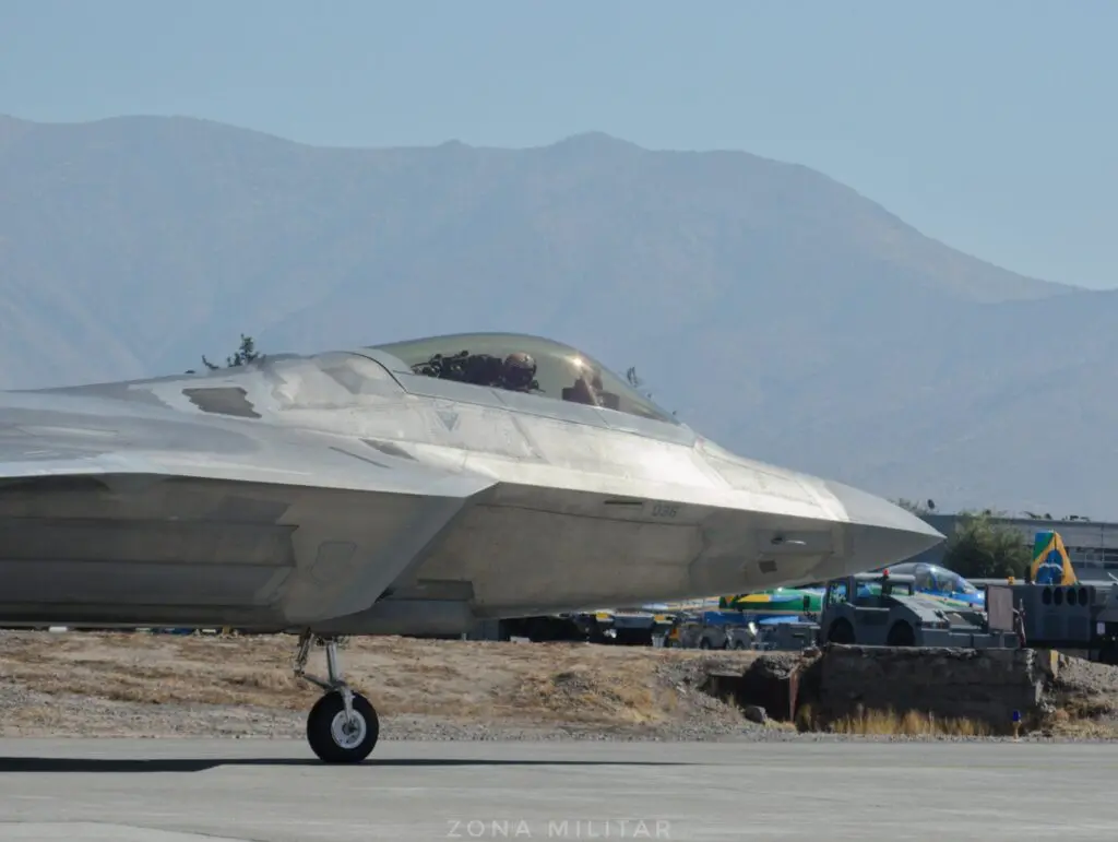 El primer día de la Feria Internacional del Aire y el Espacio 2024 (FIDAE) llegó a su fin dejando muchas postales que perdurarán en la memoria de quienes concurriendo al costado norte del Aeropuerto Internacional de Santiago, Comodoro Arturo Merino Benítez. Una de ellas fue sin lugar a dudas el despliegue de los cazas furtivos F-22 Raptor de la Fuerza Aérea de los Estados Unidos (USAF).