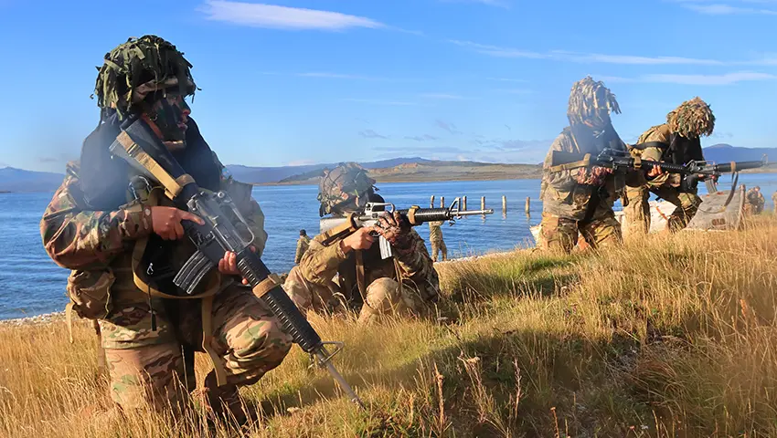 Recientemente, efectivos del Batallón de Infantería de Marina N°4 (BIM4) llevaron a cabo un adiestramiento helitransportado en las costas del Canal Beagle con el apoyo de un helicópteros Sea King de la Segunda Escuadrilla Aeronaval de Helicópteros del Grupo Aeronaval Embarcado a bordo del rompehielos ARA “Almirante Irízar” (RHAI).