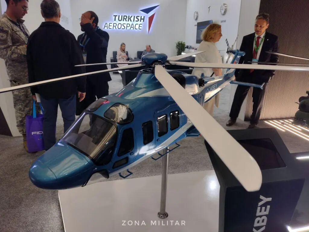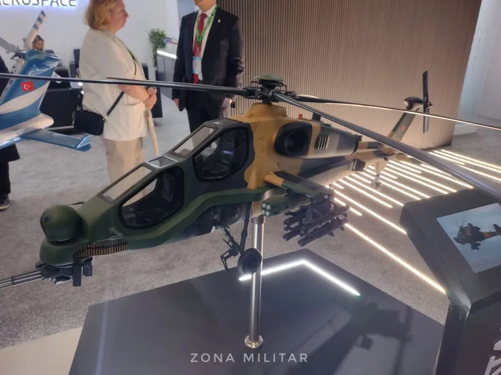 TAI: Entregamos ochenta ATAK a las Fuerzas de RA, nuestras fuerzas terrestres, y la gendarmería. Y luego también exportamos a dos países. Y estamos en conversaciones con cuatro países diferentes sobre contratos, negociaciones y el mercado. Y es un buen vendedor. También estamos desarrollando una versión más grande del helicóptero de ataque. Este pesa cinco toneladas. También estamos trabajando en una versión de once toneladas, similar al Apache. Realizamos el vuelo inaugural y estará en servicio el año que vienen con nuestras fuerzas terrestres. Para la quinta generación también realizamos vuelos de prueba este año, pero necesitamos algo de tiempo para las pruebas terrestres y aéreas. Y estará en servicio en 2028. Y con el motor turco. Excepto por el asiento eyector y el motor, el resto proviene de Turquía.