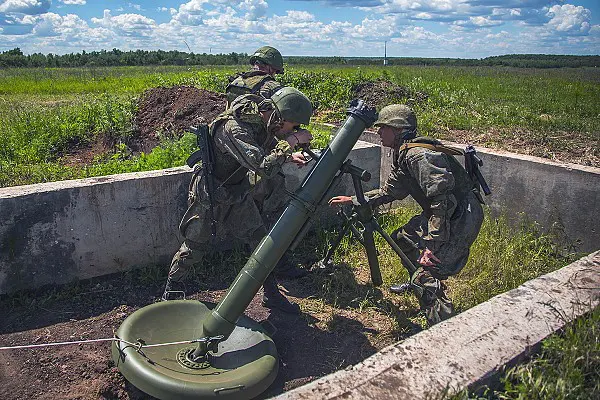 Diseñado originalmente en los tiempos de la Unión Soviética, el mortero 2B11 sigue siendo empleado de forma activa por unidades de las Fuerzas Terrestres Rusas en la actualidad. De calibre 120mm presenta una cadencia de disparo de hasta 15 rondas por minuto, abarcando distancias de hasta 7,1 kilómetros. Además, gracias su peso ligero puede ser transportado en cortas distancia por la infantería, como también remolcado por vehículos de diverso tipo.