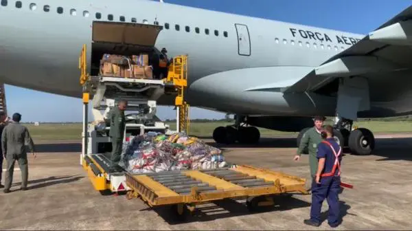 En marco de las tareas realizadas Fuerzas Armadas de Brasil en apoyo a las inundaciones en el estado de Rio Grande do Sul, la Fuerza Aérea Brasileña (FAB) a través de la coordinación del Comando de Operaciones Aeroespaciales (COMAE) llevo a cabo el despliegue de uno de sus nuevos aviones de transporte KC-30, transportando alrededor de 18 toneladas de insumos destinados a la población afectada.