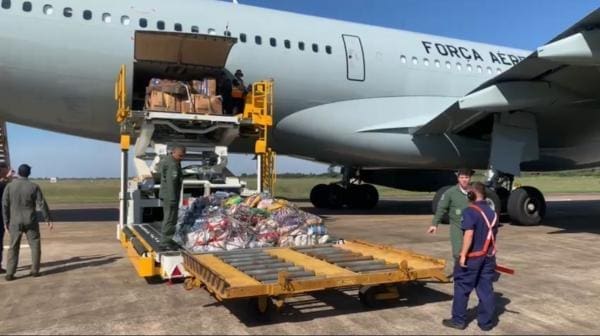 En marco de las tareas realizadas Fuerzas Armadas de Brasil en apoyo a las inundaciones en el estado de Rio Grande do Sul, la Fuerza Aérea Brasileña (FAB) a través de la coordinación del Comando de Operaciones Aeroespaciales (COMAE) llevo a cabo el despliegue de uno de sus nuevos aviones de transporte KC-30, transportando alrededor de 18 toneladas de insumos destinados a la población afectada.