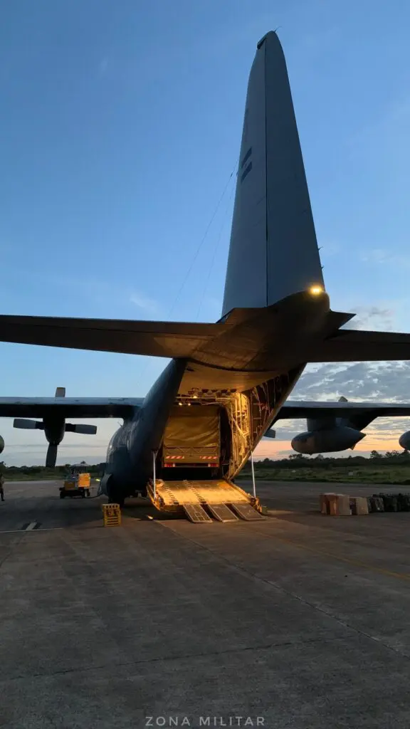 Antes de ayer, el gobierno nacional confirmó la puesta en marcha de un operativo de asistencia a Brasil involucrando a personal y medios de las Fuerzas Armadas Argentinas. Uno de los componentes de este es el envio de ayuda humanitaria a través de una aeronave de transporte de la FAA. Más precisamente, del Hércules C-130H TC-70 BAM Malvinas, el cual partió durante la tarde de hoy desde la I Brigada Aérea El Palomar, Buenos Aires, con destino a la Base Aérea de Canoas. Esta aeronave transportó personal del Ejército Argentino para sumarse a los esfuerzos de ayuda a las comunidades, como también dos plantas potabilizadoras de agua a fin de paliar los escases que está sufriendo en este sentido.