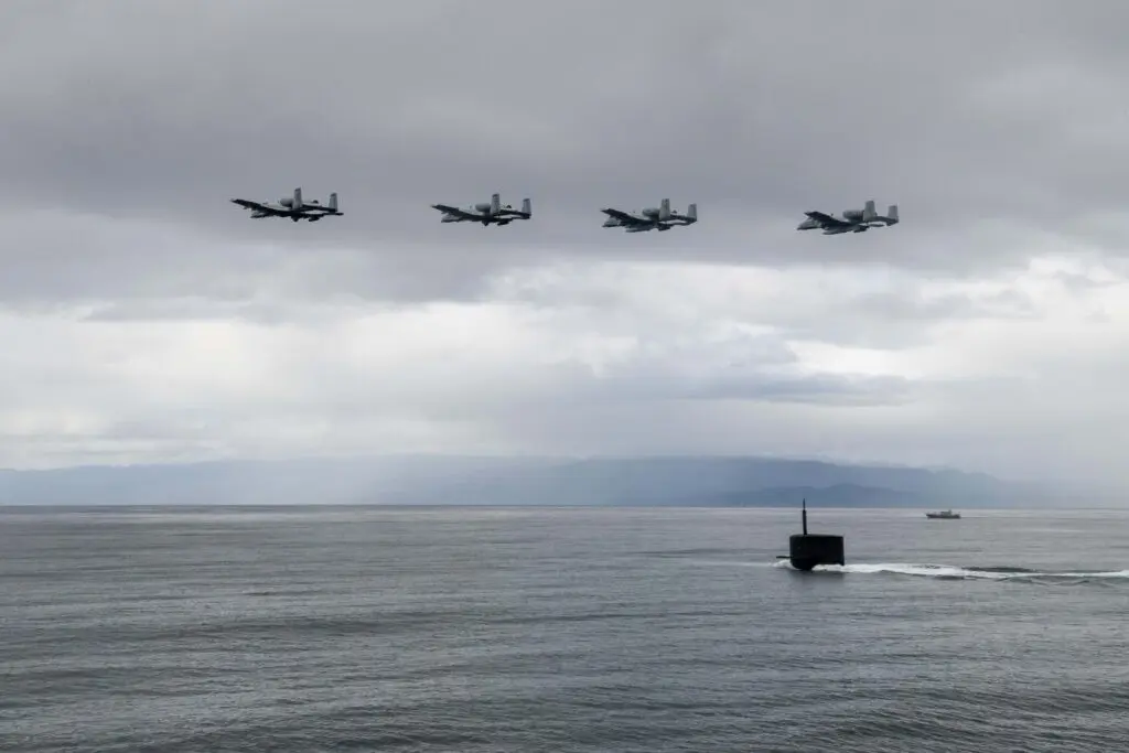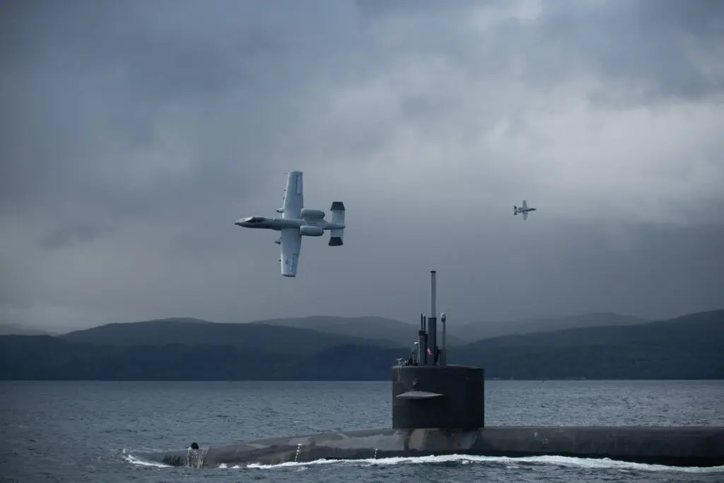 Es un hecho inusual para este tipo de aeronaves especializadas, los A-10 Warthogs de la Fuerza Aérea de los Estados Unidos (USAF) escoltaron a uno de los submarinos de misiles balísticos clase Ohio de la Armada de EE.UU. La secuencia, dada a conocer recientemente por medio de una galeria de imágenes, muestra a los aviones de ataque en un nuevo rol de protección y escolta de un valioso medio de disuasión estratégica de las Fuerzas Armadas Estadounidenses; alejado de los roles de ataque y apoyo aéreo cercano observados durante las últimas décadas.