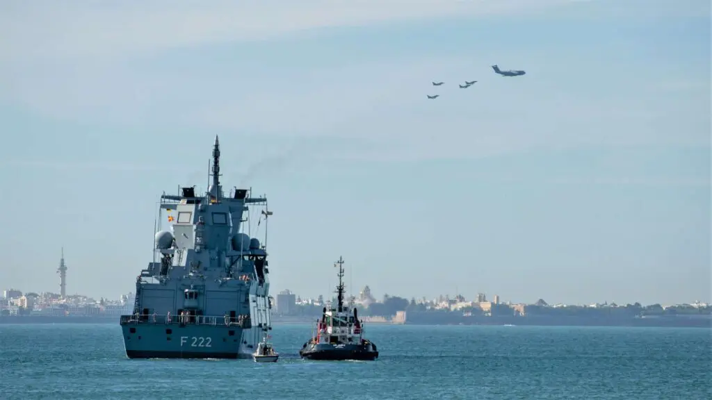 En lo especifico a la Baden-Württemberg (F222), incorporada en 2019, se trata del buque líder de nuevo clase de fragatas F125 de la Armada de Alemania. Compuesta por cuatro unidades, las F125 cuentan con una eslora de 149 mts y una manga de 18 mts. Su desplazamiento es de 7.200 toneladas, alcanzan una velocidad máxima superior a los 26 nudos y mantienen una dotación máxima de 190 efectivos. Se encuentran equipadas con un cañón Otobreda de 127mm complementado con dos cañones de 27mm MLG 27, dos lanzadores de 21 celdas con misiles RAM Block II y cuentan con la posibilidad de emplear misiles de crucero RGM-84 Harpoon.