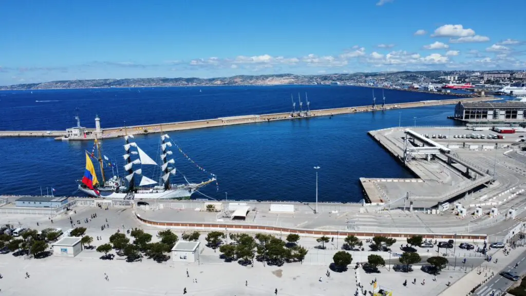 El día 5 de mayo se enarboló el pabellón en la ciudad Francesa de Marsella situada en el mediterráneo, donde se pudieron apreciar distintos grupos culturales de colombianos residentes en Francia, que realizaron muestras folclóricas y gastronómicas, y se brindó la oportunidad como es costumbre del acceso a turistas para conocer de forma guiada mas a fondo el buque escuela. Durante una entrevista brindada a medios internacionales el Capitán de Navío César Alejandro Iregui Quevedo, comandante del Buque Escuela ARC Gloria, manifestó: “hoy son alumnos, pero mañana serán Oficiales, comandantes de unidades, deben mantener las tradiciones y formarse en la planeación de todo tipo de ejercicios”.