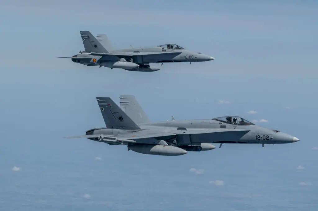 En este marco, según lo informado el 28 de mayo oficialmente, durante su ingreso al espacio aéreo de varios países de la OTAN, los Stratofortress fueron escoltados en cada tramo del trayecto por aviones cazas de las Fuerzas Aéreas de España, Alemania y Polonia. Para el caso español, tal y como dan testimonio las fotografías, esta imporante misión que busca aumentar la interoperabilidad entre fuerzas aliadas y enviar un fuerte mensaje disuasorio, fue realizada por los cazabombarderos EF-18 Hornet (designados C.15).