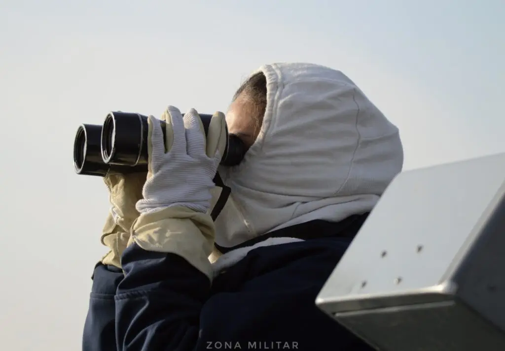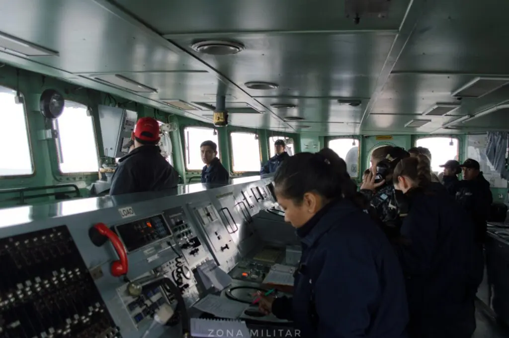 El equipo de ZM inició su periplo hacia el ARA “Sarandí “desde un RHIB del patrullero oceánico ARA “Bouchard”, una vez a bordo del destructor de la Armada Argentina, fuimos recibidos por su comandante y segundo comandante, quienes nos dieron la bienvenida y brindaron una charla de seguridad, además de proporcionar el equipo necesario para la vida a bordo. La primera jornada quedó marcada por un completo recorrido de las instalaciones del buque y el registro de las actividades preparatorias del personal para el despliegue a 150 millas de Mar del Plata.