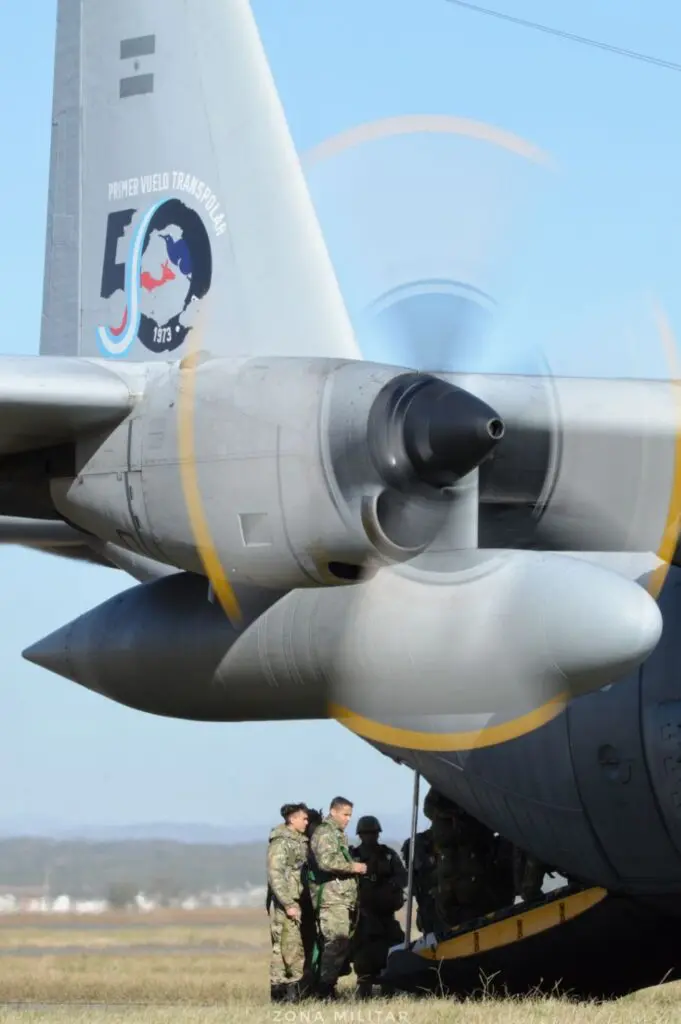 Por su parte, la Fuerza Aérea dispuso de un C-130H Hércules, el TC-66 “Polo Sur”, así como elementos de apoyo en Escuela de Aviación Militar y en La Mezquita. En esta última se desplegó el Equipo Control de Combate (ECCO) del Grupo de Operaciones Especiales de la Fuerza, el cual oficia de enlace con la tripulación del Hércules a los fines de actualizar información sobre las condiciones meteorológicas, datos que resultan esenciales para el lanzamiento de los paracaidistas y las cargas.