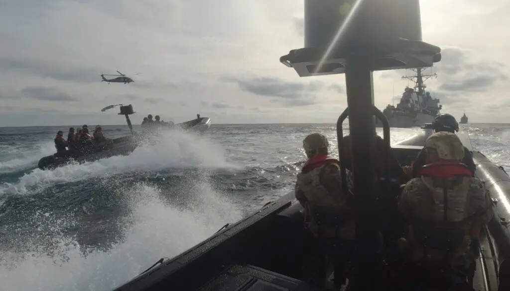Una vez abordado el destructor USS Porter, los distintos elementos de la DVRC, APBT, EOD y personal de buque llevaron adelante una operación combinada de Visita, Registro y Captura, ejercitación que implicó el desplazamiento por las distintas cubiertas del destructor estadounidense. Imágenes divulgadas por las fuerzas participantes permiten apreciar la espectacularidad del despliegue, el cual sumó las lógicas complejidades por el tipo de operación y medios que tomaron parte.