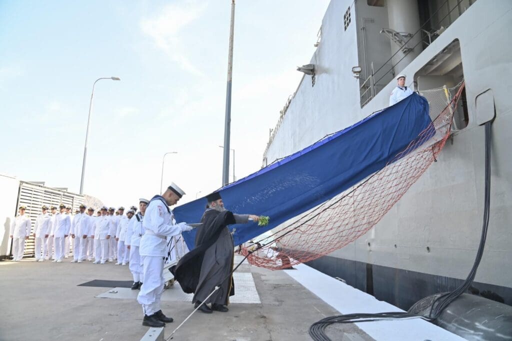 La ceremonia contó con un importante número de autoridades navales y miembros del arco político griego, destacandose en ese sentido la presencia de la presidente del país Katerina Sakellaropoulou, como así también la del ministro de defensa Nikos Dendias. A su vez, asistió el jefe de las Fuerzas Generales de Defensa, General Dimitrios Houpis, al que se le sumó el alcalde de la ciudad George Panagopoulos.