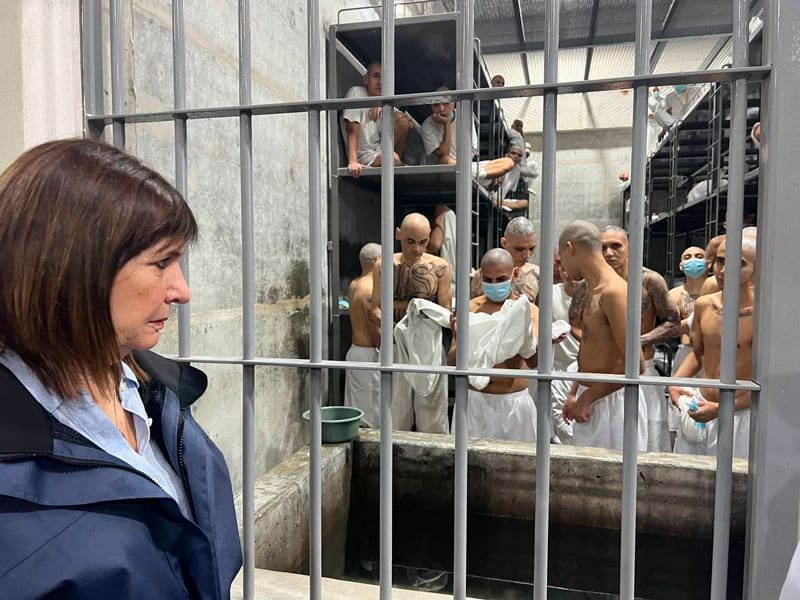 Durante su visita a El Salvador, la Ministra de Seguridad argentina inició su agenda con el recorrido del Centro de Confinamiento del Terrorismo (CECOT), un centro penitenciario de máxima seguridad con capacidad para 40,000 presos que Bukele construyó para combatir a la delincuencia del país, fundamentalmente aquella provocada por las bandas armadas.