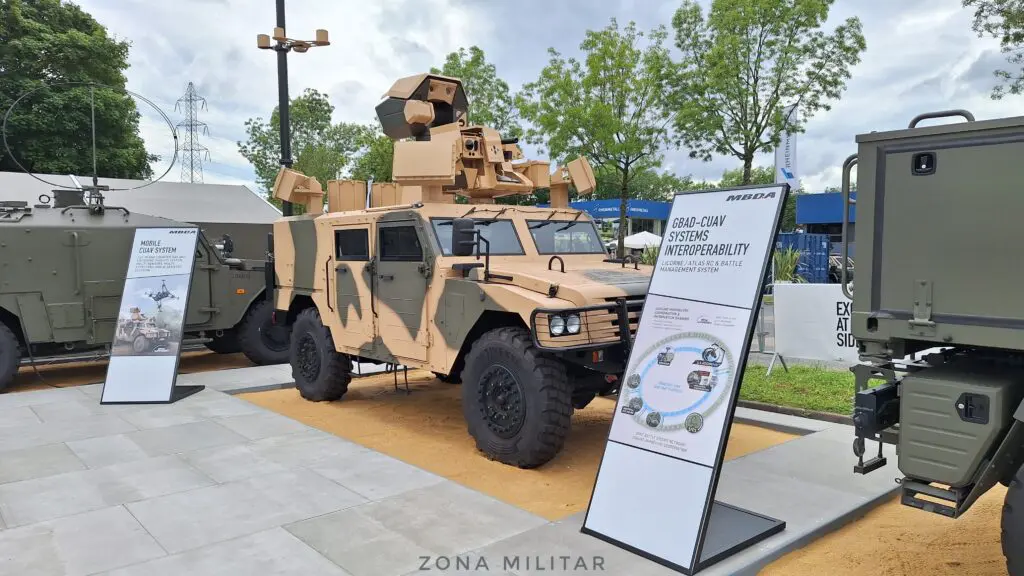 A su vez, teniendo en cuenta los cada vez más crecientes requerimientos de protección contra drones de diversos tipos, en el stand de MBDA se pudo apreciar la presencia de sistemas de defensa instalados en plataformas móviles 4×4. Durante nuestro recorrido pudimos observar al Mobile CUAV System y al sistema de gestión de batalla GBAD-CUAV.