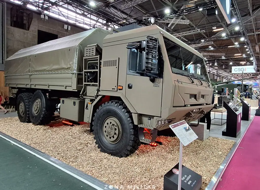 CSG Defence también tiene una importante presencia en el nicho de vehículos militares y de combate gracias a las soluciones que brinda Tatra. Esto incluye los reconocidos camiones de la marca, los cuales no sólo se ofrecen en configuraciones 4×4, 6×6, 8×8, 10×10 y 12×12, sino que además cuentan con decenas de variantes especializadas. Para Eurosatory se dispuso de un Tatra Force 8×8 T 815 6×6.