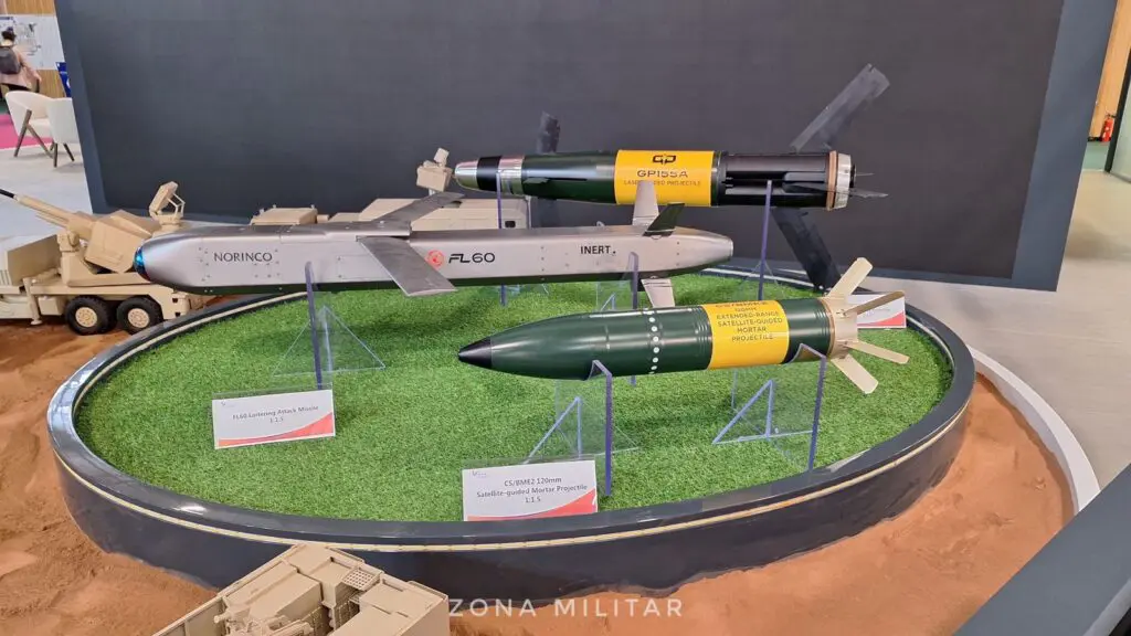 En cuanto a los sistemas de artillería, la compañía china presentó las réplicas a escala de los obuses autopropulsados SH8, el sistema de lanzamiento múltiple de cohetes SR6, el Vehículo de Combate de Artillería a Rueda GSH15, y por el lado de los sistemas de defensa aérea el Skydragon GA29.