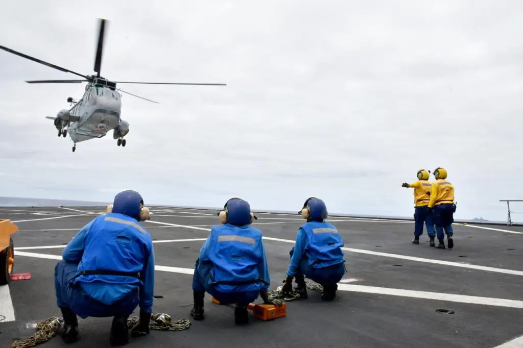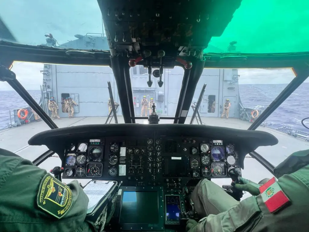En base a las imágenes publicada por la Marina de Guerra del Perú, uno de los helicópteros Sea King embarcados en el BAP Pisco realizó “una transferencia aérea del CTG 500.01, Contralmirante Axel Schulz y su comitiva, desde la fragata alemana FGS “Baden Württemberg” a la fragata canadiense HMCS “Vancouver…” de la Real Armada Canadiense.