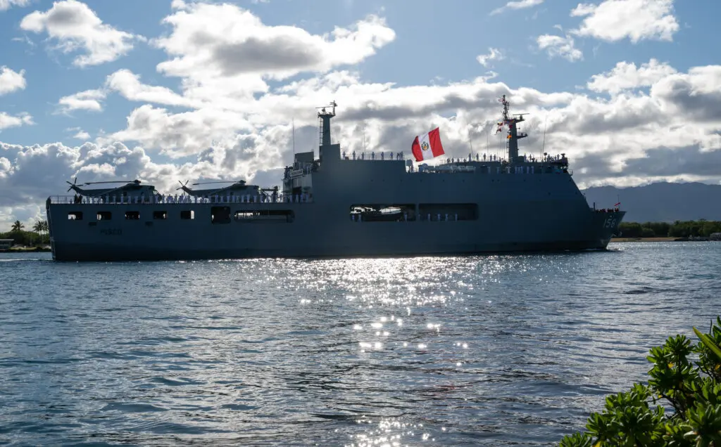 Por parte de la Marinad del Guerra del Perú, la fuerza ha dispuesto la participación de uno de sus buques multipropósito Tipo LPD de la clase Makassar. El BAP Pisco zarpó a finales del pasado mes de mayo desde la Base Naval El Callao con destino a Hawái. Durante su trayecto, se sumo al denominado como Group Sail Multinacional, conformado por diversos buques que también se darán cita en el RIMPAC 2024.