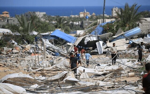 Varias personas buscan objetos rescatables tras una incursión israelí en Rafah, en el sur de la Franja de Gaza, 29 de junio de 2024. Fuente: Eyad Baba/AFP