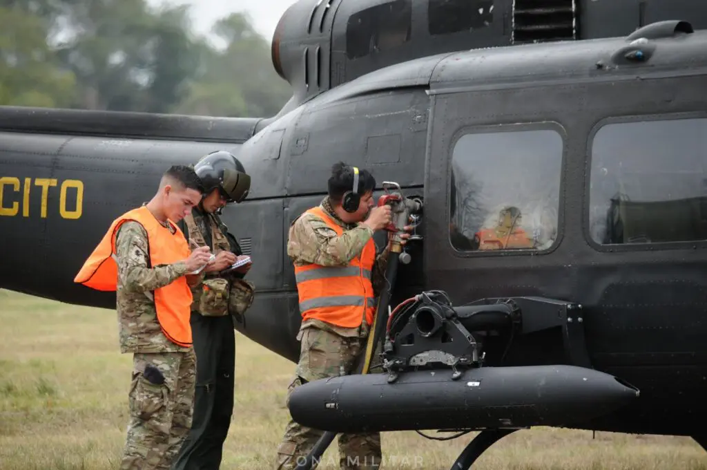 Una vez desplazado un sistema de mal tiempo, el componente aéreo compuesto por tres helicópteros Bell UH-1H Huey II del Batallón de Helicópteros de Asalto 601, dos Bell UH-1H y un Agusta Bell AB-206 pertenecientes al Escuadrón de Exploración y ataque 602 arribaron al polígono de tiro de la unidad, luego de reabastecerse de combustible y armar los elementos necesarios se comenzó con la actividad.