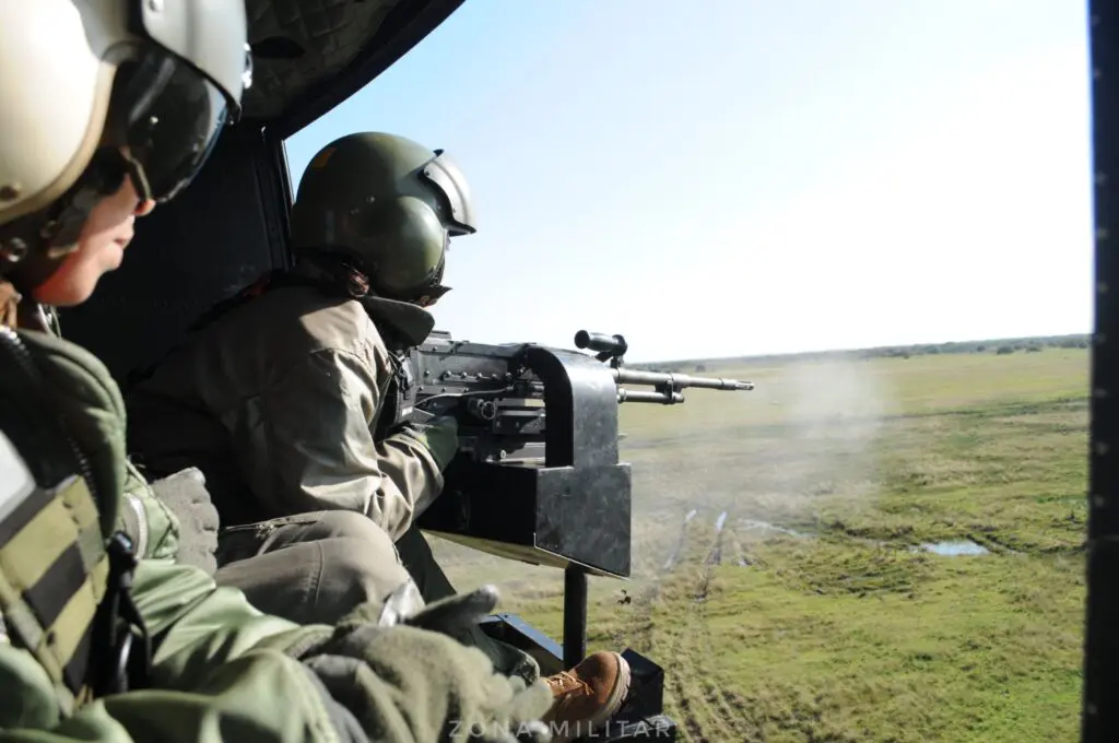 Una vez terminada esta fase del ejercicio fue el turno del Batallón de Helicópteros de Asalto 601 el cual realizo tiro con ametralladoras Mag 7.62 en soportes para artilleros de puerta atacando a blancos preestablecidos en el terreno mientras se volaba a baja altitud.