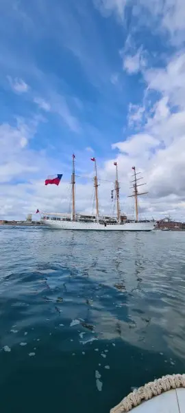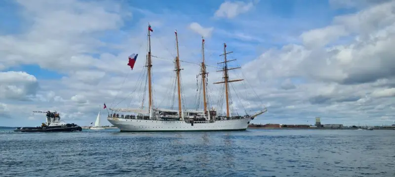 La embarcación chilena estará en Inglaterra hasta este viernes 5 de julio, periodo en el que los Guardiamarinas y Marineros sudamericanos compartirán con sus pares de la Real Armada Británica en una serie de actividades de instrucción, entre la que se contempla una agenda deportiva y cultural.Cabe señalar que la dotación, al mando del Capitán de Navío Fernando Méndez está compuesta por 283 tripulantes, de los cuales 94 son Guardiamarinas y 34 Marineros. A su vez, cuenta con cuatro Oficiales de las otras ramas de las Fuerzas Armadas, de Orden y Seguridad Pública.
