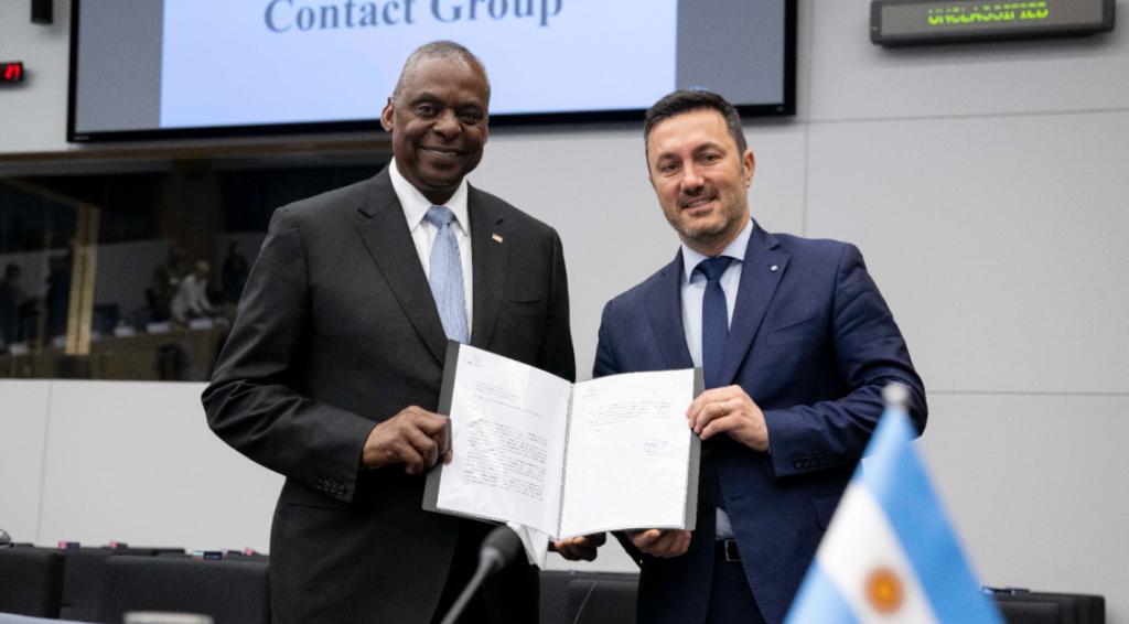 En los pedidos de informes realizados por la bonaerense Propato, se interroga al Poder Ejecutivo sobre la inclusión de Argentina al Grupo de Contacto de Defensa de Ucrania, en base al comunicado emitido por el Ministerio de Defensa de la Nación el pasado 13 de junio. En él se consigna que el denominado Grupo, también conocido como “Formato Rammstein”, se dedica a apoyar militarmente a Ucrania en su guerra con la Federación de Rusia, constituido en dicha localidad del sudoeste alemán apenas dos meses después de iniciado el conflicto.