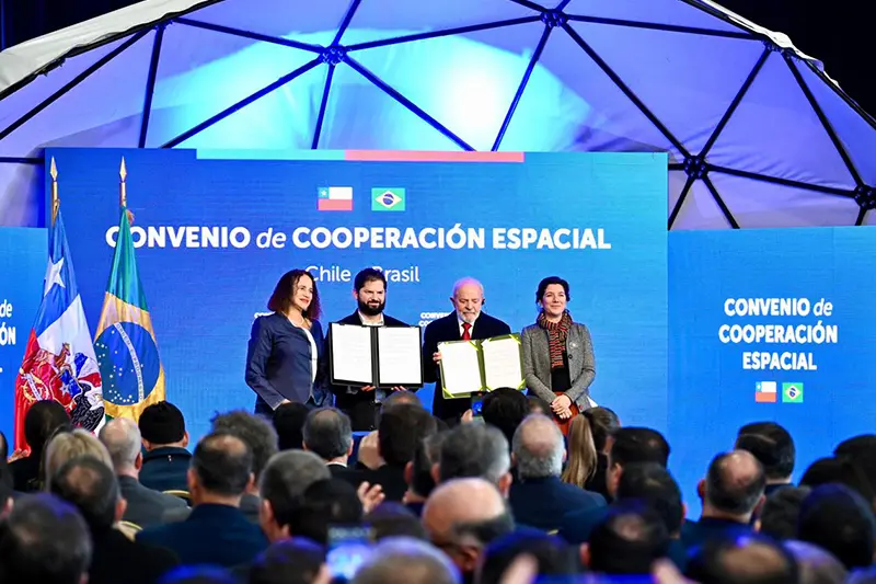 Este martes, 6 de agosto, los gobiernos de Brasil y Chile firmaron un acuerdo de colaboración espacial que permitirá explorar nuevas iniciativas conjuntas entre ambos países en dicha materia. El convenio fue firmado por los presidentes Lula da Silva y Gabriel Boric en una ceremonia llevada a cabo junto a la Base Aérea Cerrillos de la Fuerza Aérea de Chile (FACh), donde se construye el Centro Espacial Nacional de Chile.