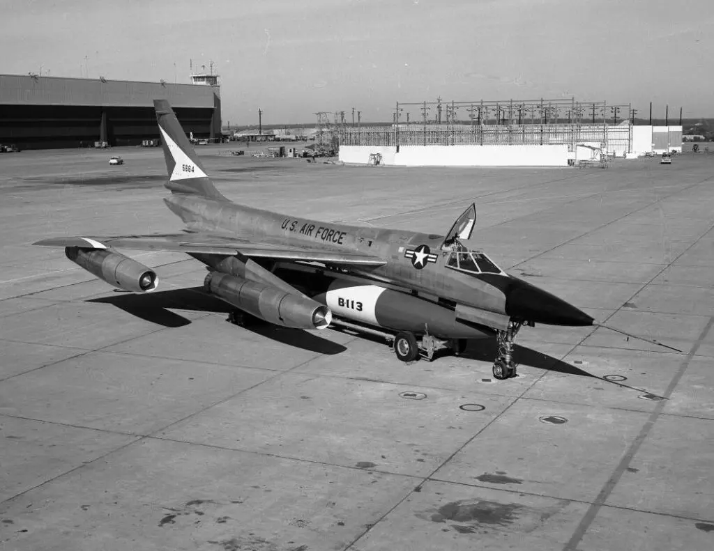 El primer vuelo del B-58 fue en noviembre 1956 y su entrada en servicio en marzo de 1960. Fue el verdadero innovador en el concepto de vuelo supersónico sostenido para un bombardeo. Estaba diseñado con capacidad básica de bombardeo estratégico nuclear supersónico de penetración, a gran alcance (> 1500 mn), con capacidad secundaria de transónico a baja altura.