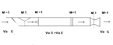 Pero el flujo subsónico dentro del motor se acelera hasta la tobera de salida, a donde debe llegar a la máxima velocidad posible, a mayor velocidad Va que la de vuelo. Esto lleva a necesitar una tobera variable, con Va salida a M>1.