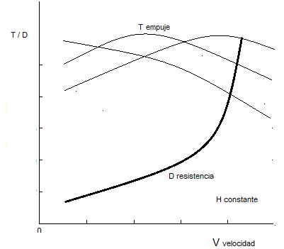 De lo anterior va quedando claro que no se puede tener un avión supersónico sin un motor supersónico. Y esto implica que el empuje necesario se consiga a la velocidad y altura de diseño del avión. Conceptualmente, el empuje varíaa con la altura Fig 22 y con la velocidad Fig 23, y se aprecia de Fig 23 que con las herramientas analizadas, puede adecuarse el máximo empuje para mayor aceleración o máxima velocidad, dependiendo del objetivo de diseño.