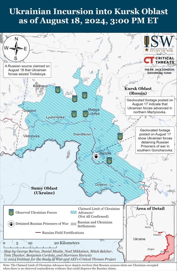 Hasta ahora, Kyiv ha dado pocos detalles sobre los objetivos de su incursión en Rusia, la mayor desde la Segunda Guerra Mundial, que tomó por sorpresa al Kremlin y resultó en la captura de numerosas aldeas y cientos de prisioneros. Las fuerzas ucranianas avanzaron profundamente en la región en varias direcciones, enfrentando poca resistencia y sembrando el caos y el pánico mientras decenas de miles de civiles huían. El comandante en jefe de Ucrania, el general Oleksandr Syrskyi, afirmó la semana pasada que sus fuerzas habían avanzado 1.000 kilómetros cuadrados en la región, aunque no fue posible verificar de manera independiente qué zonas controlan efectivamente.