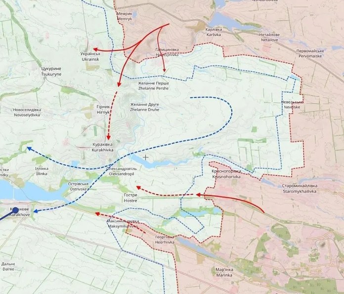 Las tropas rusas han avanzado hacia el oeste, bordeando el río Vovcha y aproximándose a menos de 10 kilómetros de Pokrovsk. En este movimiento, han logrado evitar la fuerte resistencia ucraniana que mantenía la línea entre la aldea de Memryk y el río Vovcha, creando un saliente vulnerable que se adentra en las líneas rusas. Este saliente, según expertos militares, podría convertirse en una trampa mortal para las tropas ucranianas, con solo un par de maniobras rusas decisivas.