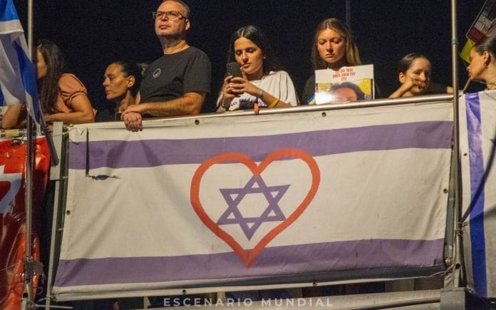 Fuentes consultadas por Escenario Mundial confirmaron que más de 200.000 personas se agruparon en las avenidas de Tel Aviv, en una demostración masiva de apoyo a las familias de los rehenes. La protesta principal fue organizada por el Foro de Familias de Rehenes, que desde el 7 de octubre realiza manifestaciones semanales para mantener vivo el reclamo por la liberación de sus seres queridos.