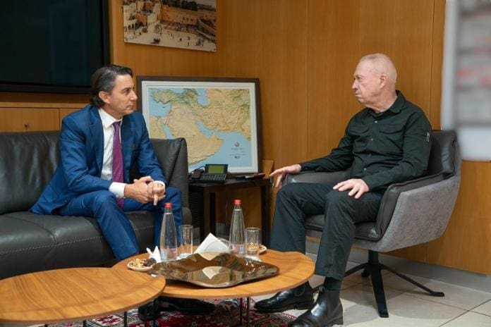 El enviado estadounidense Amos Hochstein (izquierda) se reúne con el ministro de Defensa Yoav Gallant en Tel Aviv el 16 de septiembre de 2024. (Ariel Hermoni/ Ministerio de Defensa)