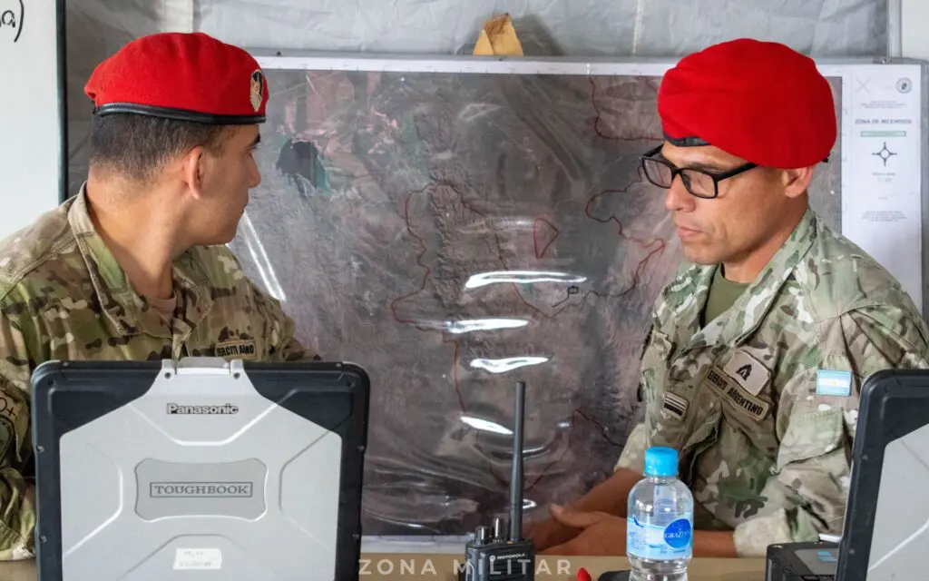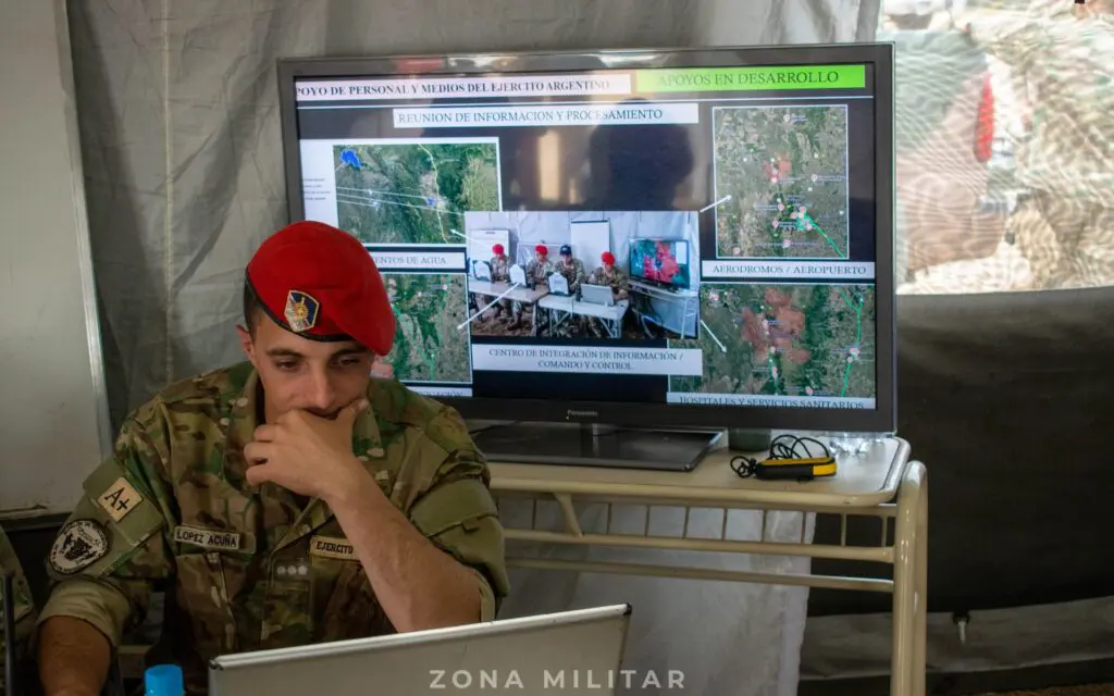 Durante los últimos días y en función del avance de los incendios en la provincia de Córdoba, el Ejército Argentino ha avanzado en el despliegue de distintos medios y personal para colaborar en la lucha contra el fuego en esa provincia. El equipo de Zona Militar se hizo presente en la zona donde se encuentra la base de apoyo adelantada, a fin de poder contar con la voz de los protagonistas de la fuerza que colaboran con la mitigación de los efectos de los incendios, además de prestar apoyo de manera Inter agencial a distintos organismos e instituciones que combaten el fuego.
