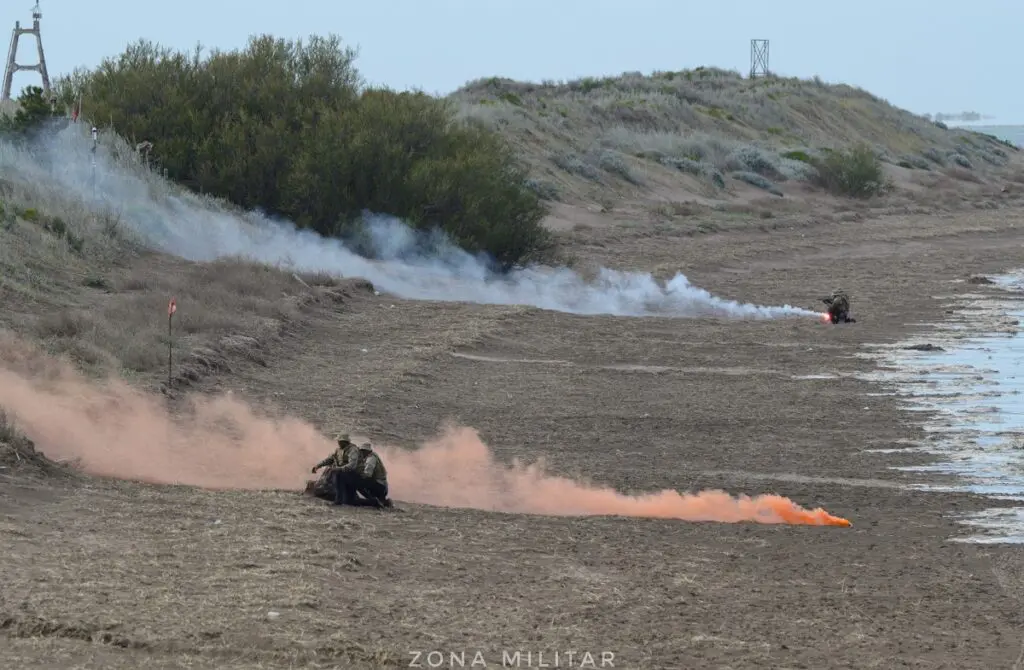 Dentro de las actividades realizadas a lo largo del ejercicio AONIKENK 2024, Zona Militar también pudo estar presente en lo que fue la demostración de una incursión anfibia de personal y unidades de la Infantería de Marina con apoyo de elementos de operaciones especiales de la Armada Argentina cómo parte de la comprobación de planes de campaña.
