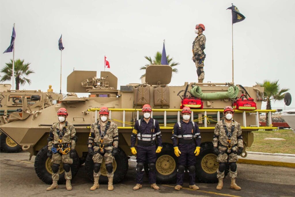 También se dispone del Batallón de Vehículos Tácticos de Infantería de Marina, que en esta faceta y con sus General Dynamics Land Systems Canadá LAV II cumple la función de transportar a los Infantes de Marina a las zonas afectadas, así como evacuar a las víctimas. Esta capacidad forma parte de las renovadas y ampliadas responsabilidades de la organización militar, de gran importancia en un país de alta actividad sísmica como es el Perú, ubicado dentro del Cinturón de Fuego del Pacífico.