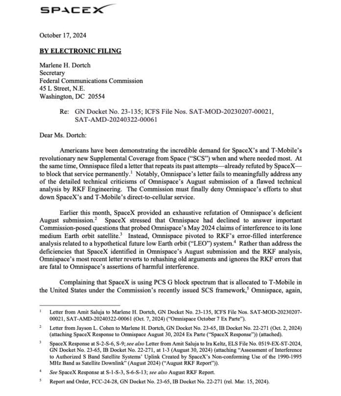En una reciente y reveladora presentación ante la FCC, SpaceX expuso cómo Omnispace alteró su satélite MEO para “detectar de forma deliberada” señales de Starlink, a pesar de que dicho satélite estaba casi inoperativo. Además, calificó las acusaciones de “extrañas”, alegando que Omnispace había creado “condiciones artificiales” para simular interferencias.