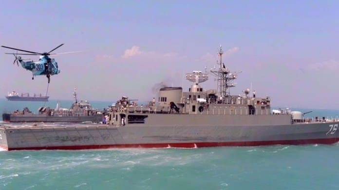 Esta foto de archivo muestra el destructor Jamaran de la Armada de la República Islámica de Irán navegando en aguas del Golfo Pérsico. (Foto de la agencia de noticias Mizan)