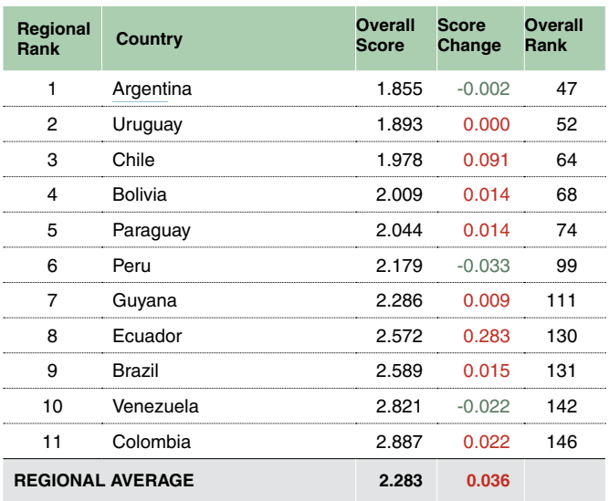Para el análisis de la seguridad en América Latina, el Índice de Paz Global (IPG) emplea 23 indicadores para evaluar la seguridad de cada país. Entre los factores analizados se incluyen: