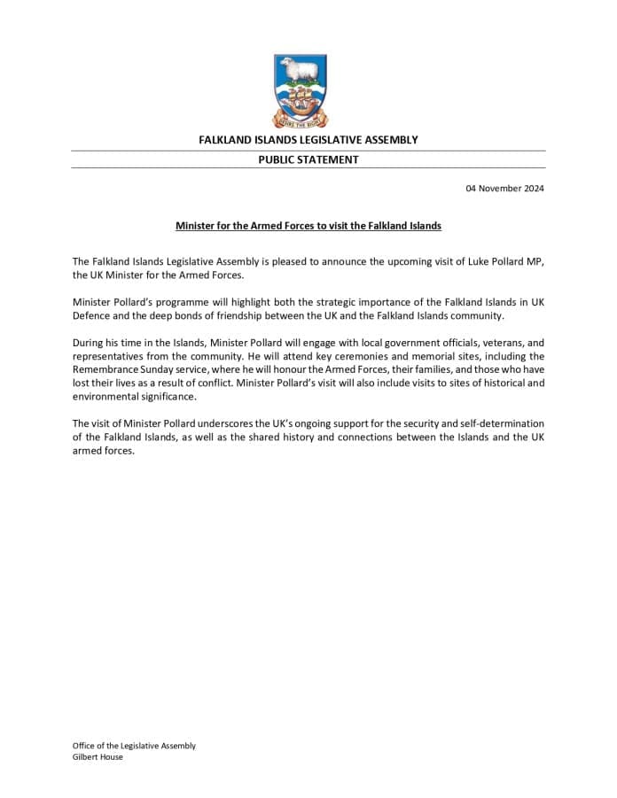 A través de un reciente comunicado publicado esta semana en la red X por la asamblea legislativa ilegítima de las Islas Malvinas, se dio a conocer que el Ministro de las Fuerzas Armadas del Reino Unido de Gran Bretaña e Irlanda del Norte, Luke Pollard, visitaría el territorio. El mismo afirma que “el programa del Ministro Pollard resaltará tanto la importancia estratégica de las Islas Malvinas en el Reino Unido Defensa y los profundos lazos de amistad entre el Reino Unido y la comunidad de las Islas Malvinas”.